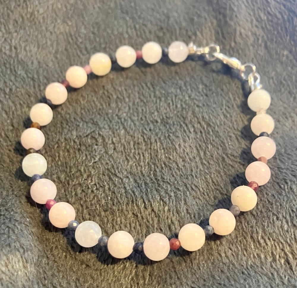 This bracelet blends softness and sparkle—ideal for those seeking grace, resilience, and a quiet glow in their everyday wear.