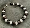 Black Sardonyx, Frosted White Dragon Vein Agate, Rhodonite & Faceted Bright Silver Hematite - Size 7